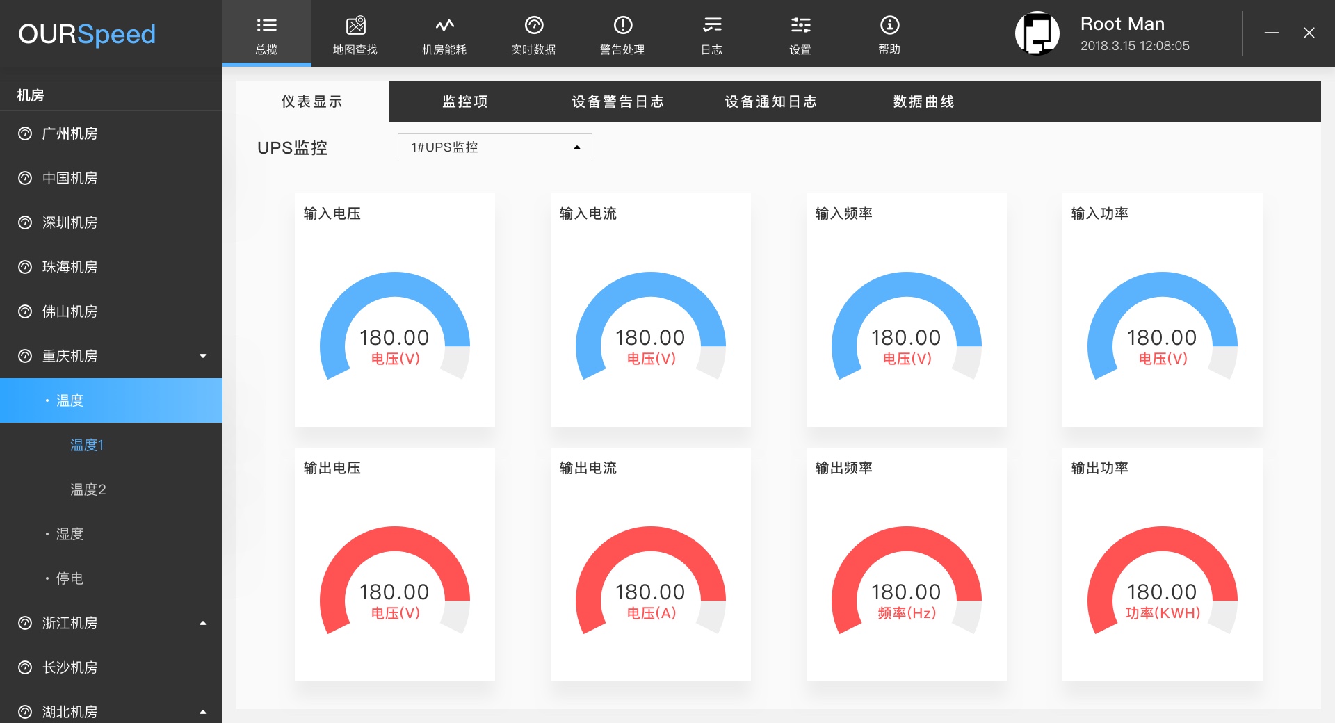 提供曲线记录,直观显示实时及历史曲线,可查询一年内相应参数的历史曲线及具体时间的参数值(包括最大值、最小值),并可将历史曲线导出为EXCEL格式,方便管理员全面了解UPS的运行状况。