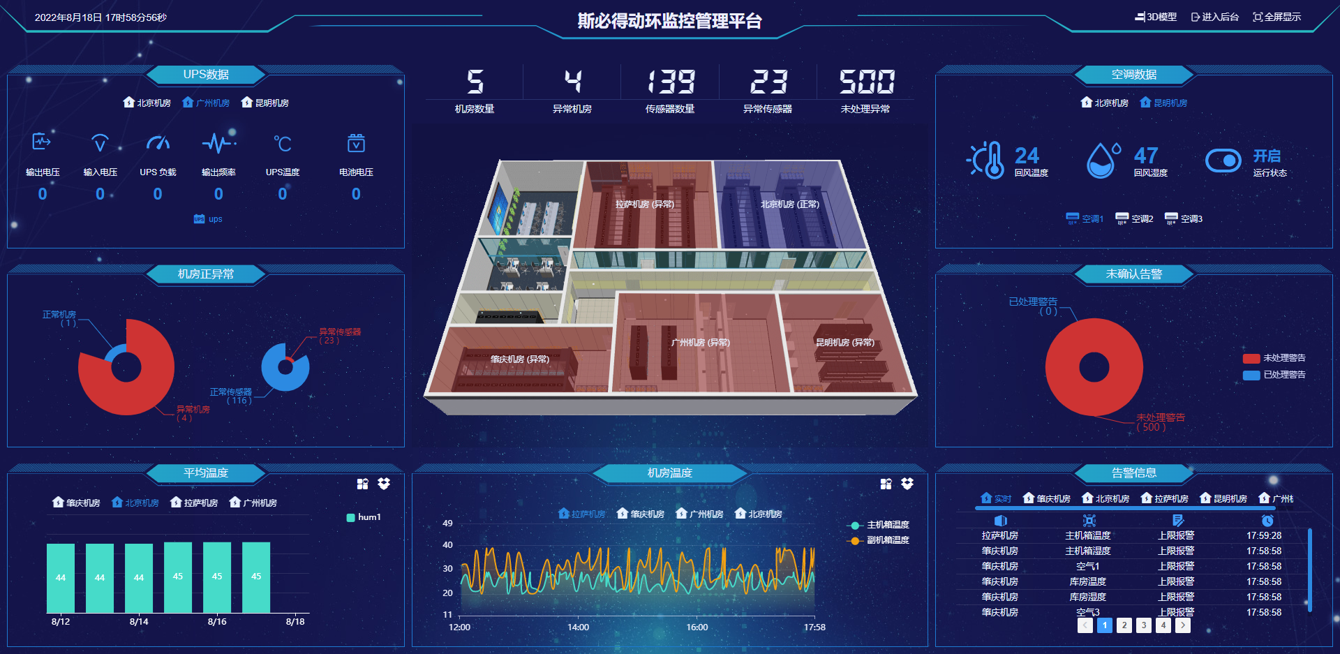 机房动力环境监控系统主要通过对关键动力设备,如UPS电源、发电机、配电柜等,以及环境参数,如温度、湿度、空气质量、水浸等,进行实时监测与记录,确保设施运行的安全与稳定。